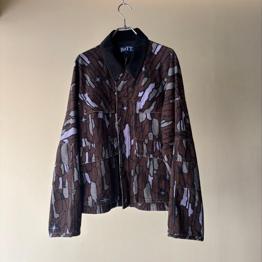 カモフラージュ柄のブラウン・パープルで刺繍デザインのミリタリージャケット。
