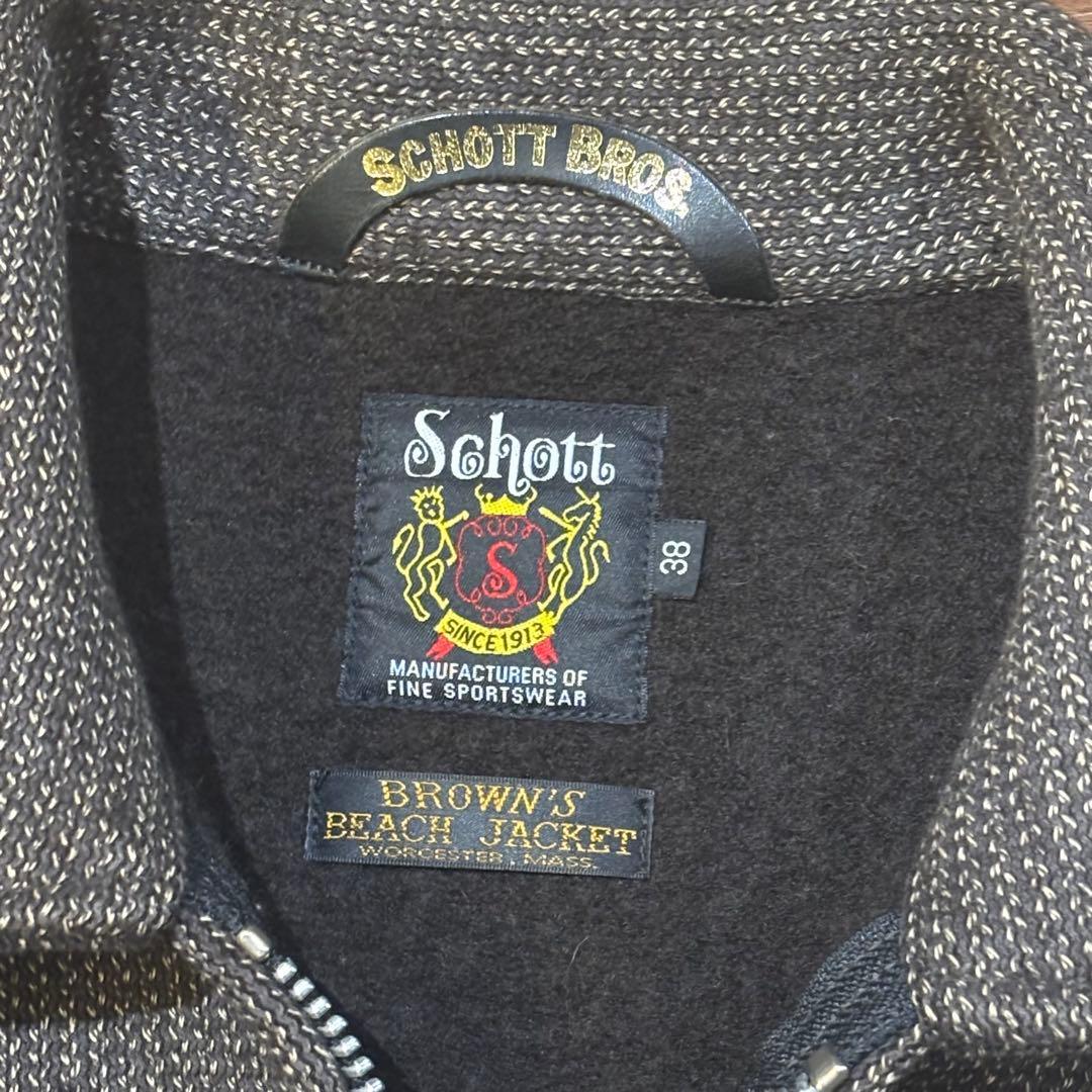 ジッパー付きのグレー系BROWN'S BEACH JACKET、サイズ38、ポケット付きで実用的。