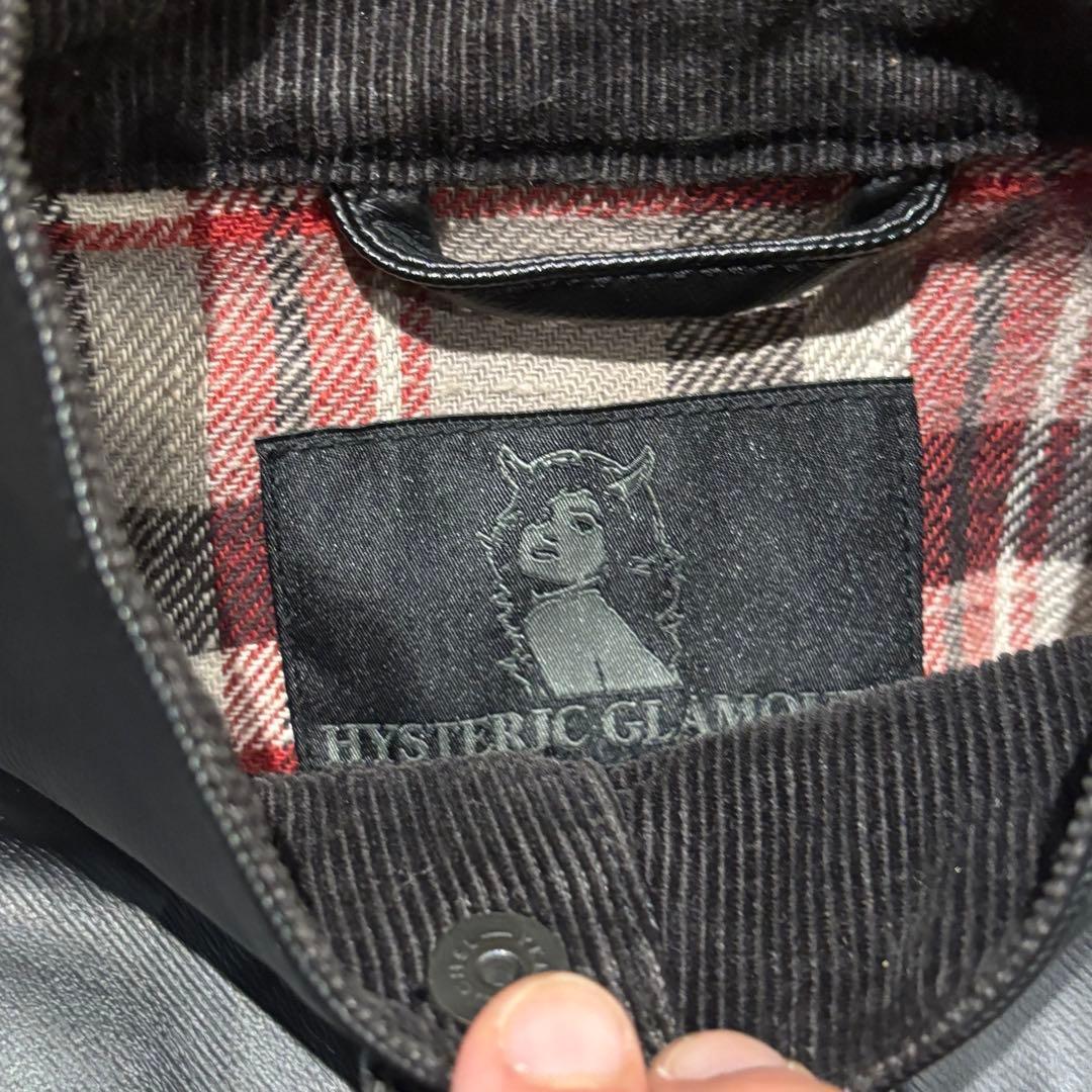 HYSTERIC GLAMOURのシングルライダースジャケット、黒のレザー素材でカジュアルなスタイルに最適。