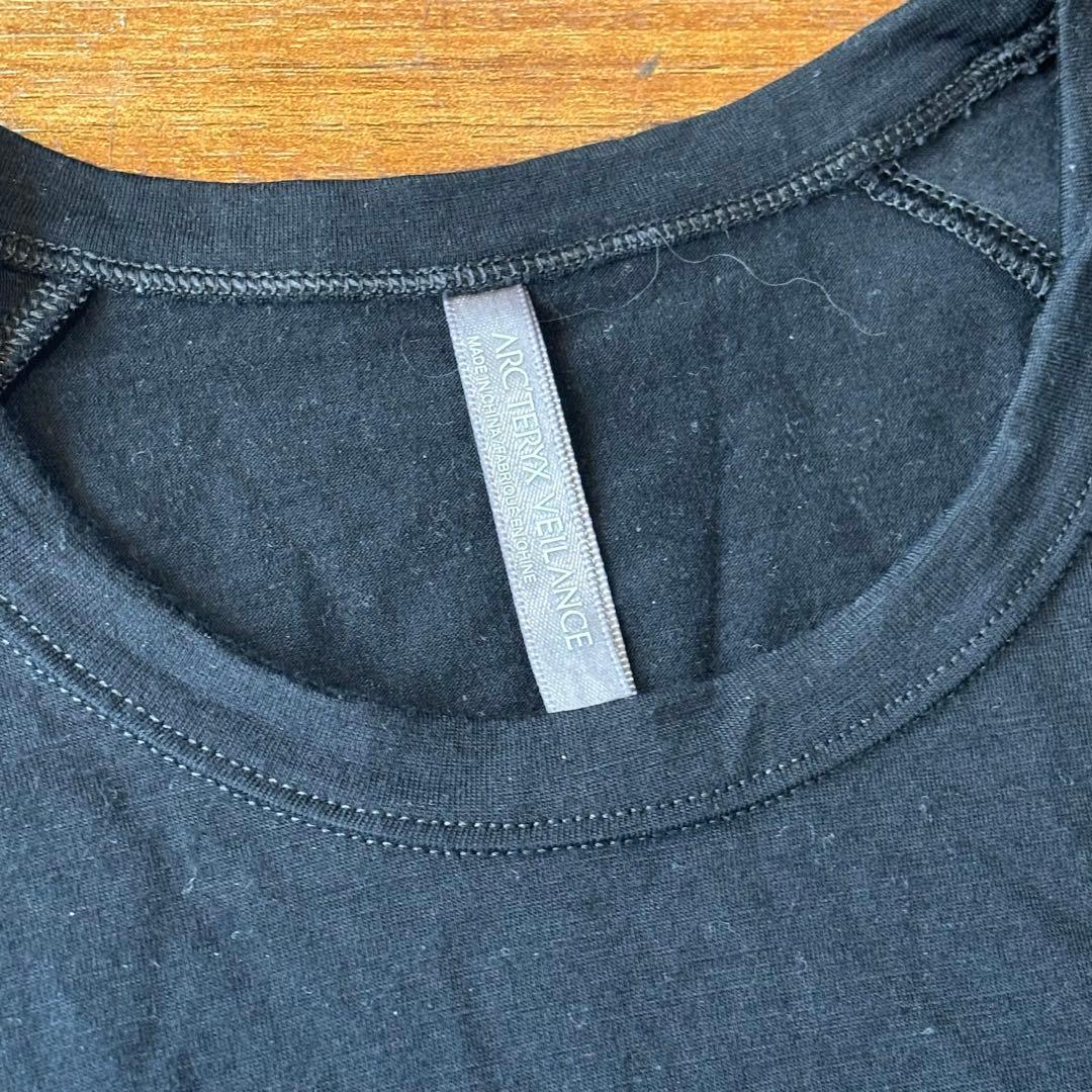ARC'TERYXヴェイランスのブラック長袖Tシャツ、快適なコットン素材。